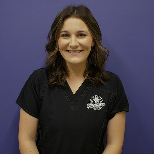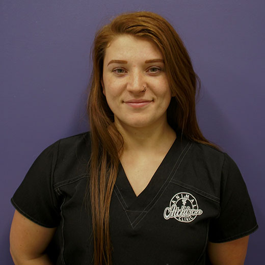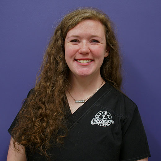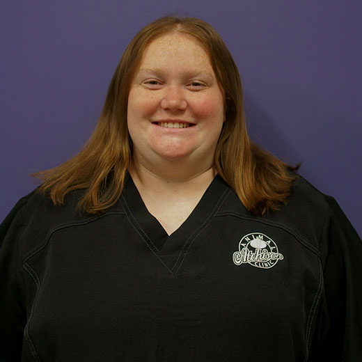 Baillie grew up in Eudora Ks where she found her love of animals both large and small at her family farm. From a young age she knew she wanted to a voice for animals and found that through starting her career in veterinary medicine as a kennel assistant at local clinic in 2014. As she worked she attended the Vet Tech program at Brown Mackie Collage. She graduated in 2018 and soon became a registered veterinary technician. She married her husband Aaron on 2019 moved to the Leavenworth area and has 2 wonderful boys, James and Isaiah. In her spare time she enjoys spending time with her family, her dog Goose and cat Otis. She enjoys being at the lake and helping her husband work outside. She also enjoys relaxing with her boys and crocheting. Although she works primarily with small animals she loves large animals and hopes to continue to grow her skills and knowledge here at Atchison.